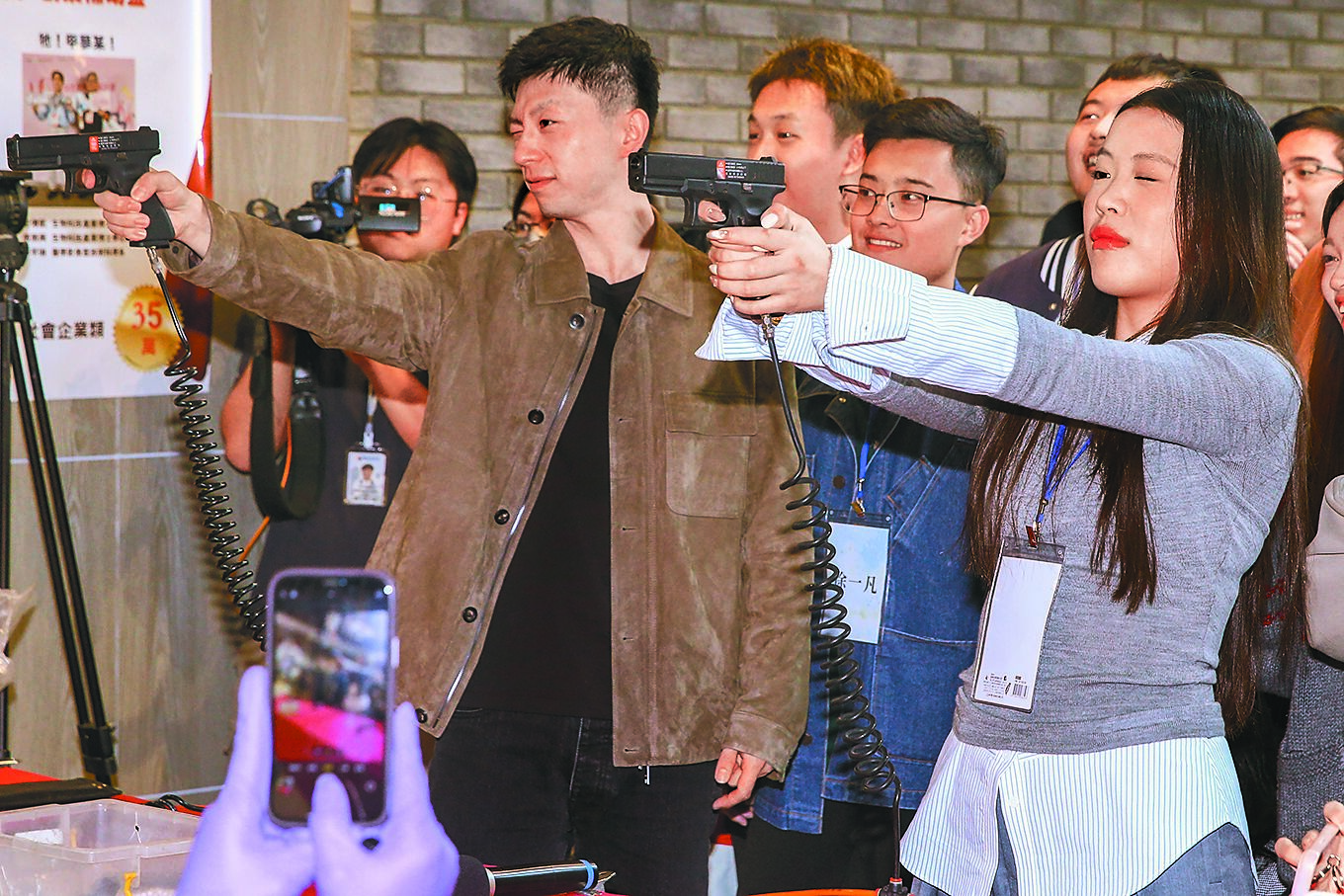 楊倩率先示範,首次體驗的她拿起射擊槍時先研究一番,正式開始時展現神槍手美技,10發子彈連破9顆氣球,現場驚呼連連。接著兩岸學生抽籤分為兩隊,以楊倩與奧運桌球6金選手馬龍為首PK「射氣球」,楊倩連續5中5,馬龍則是單手持槍5中2,結束還俏皮吹一下槍頭,讓現場歡笑聲連連。