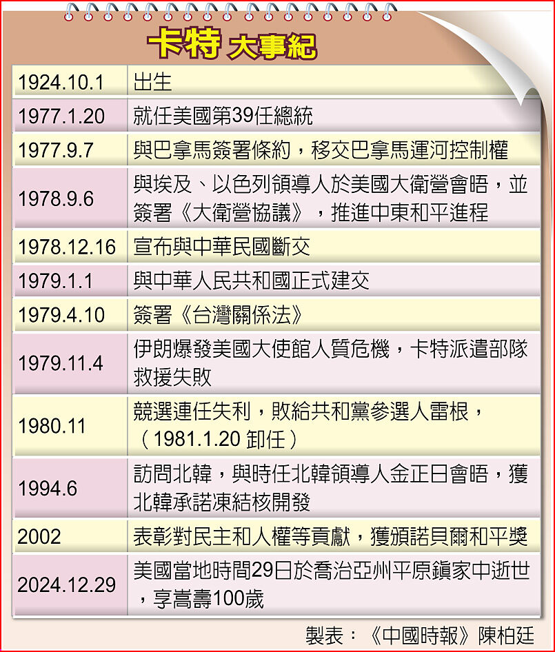 美前總統卡特辭世 任內與台斷交