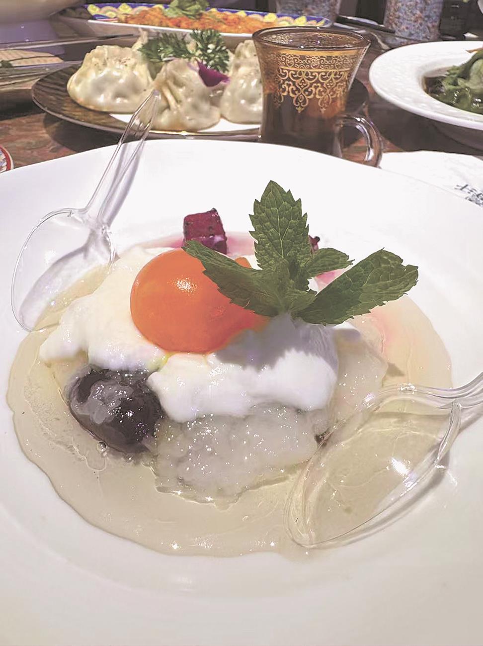 當攝製團隊入座時,老闆得知我們來自台灣,特地送上特製酸奶迎賓。「新疆人,天性好客。」那一刻,我們嘗到的不僅是酸奶的純厚,更是倍感尊榮的禮遇。餐廳負責人說,「新疆每一種香料、每一種食材,都有傳承。希望客人不僅用味蕾品嘗,也能理解每道料理背後的故事。」