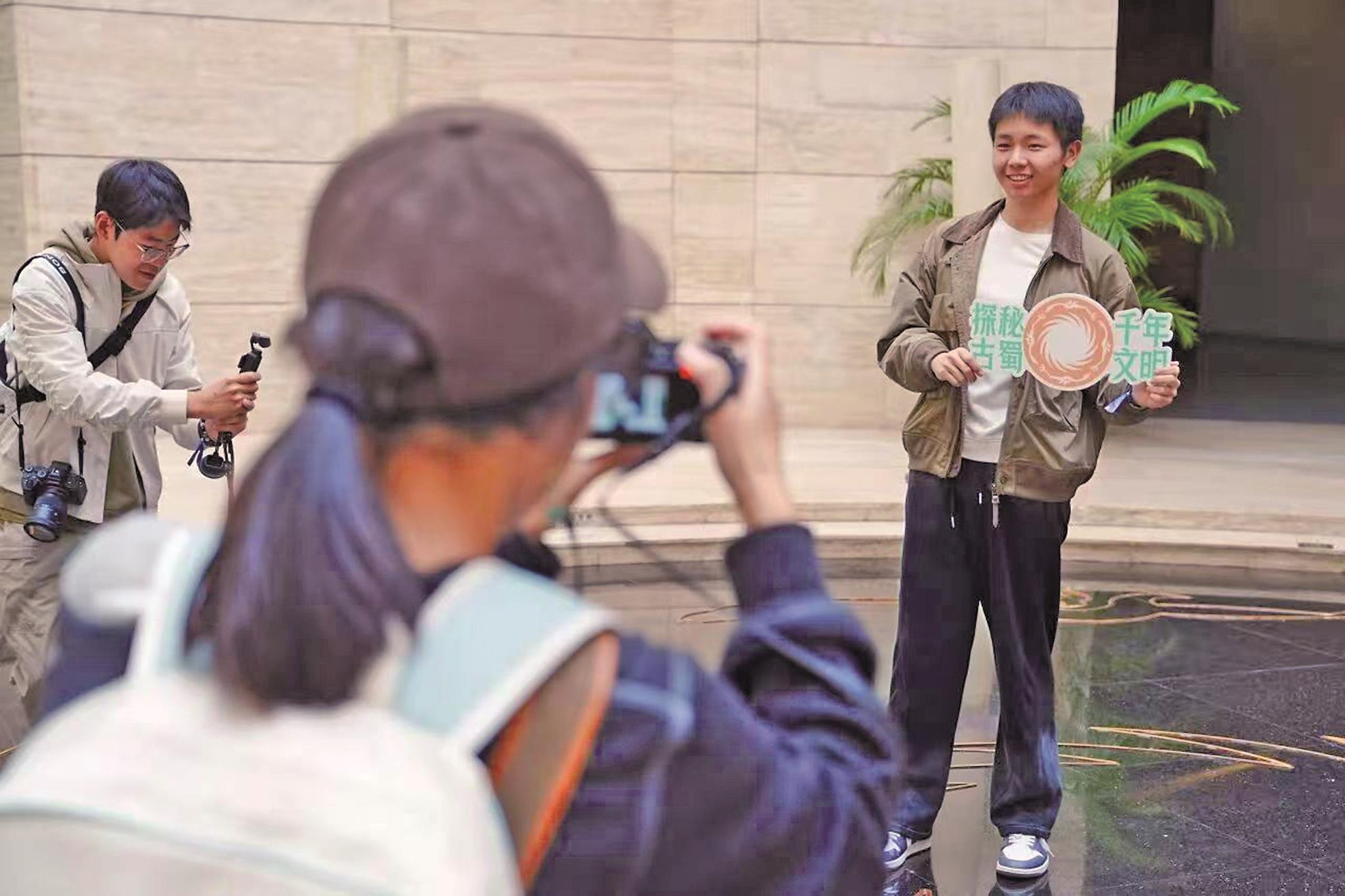 大學生們在成都街巷穿梭,在高鐵站體驗零碳科技,在文博館前反覆調光對焦。之後的行程更是密度驚人,從探祕古蜀文明、走訪非遺工坊,到追尋三國遺跡、零距離接觸熊貓,再一路吃進川味魅力。五組成員以不同主題分頭創作,共同策畫、拍攝、剪輯完成5部短片作品並接受專業評委評選。