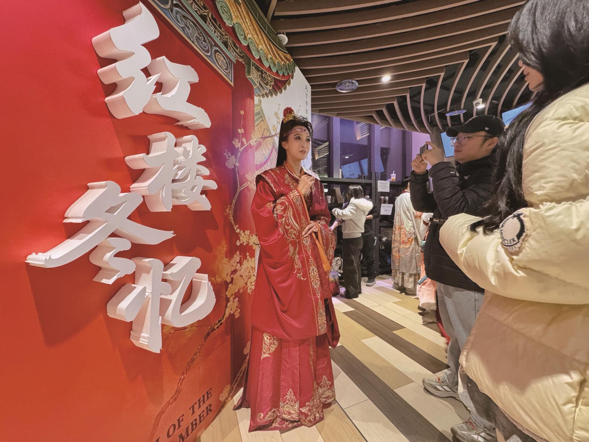 活動現場洋溢著紅樓雅韻與青春氣息,「沁芳亭」、「蘆雪庵」、「滴翠亭」等多個特色布景錯落分布,讓大家一秒「穿越」進大觀園。多個《紅樓夢》經典人物NPC(非玩家角色)身著錦衣華服活躍場內,水袖翻飛間再現紅樓場景。兩岸青年們在趣味活動中闖關玩樂,體驗《紅樓夢》中的文化故事,深化對古典名著的理解。