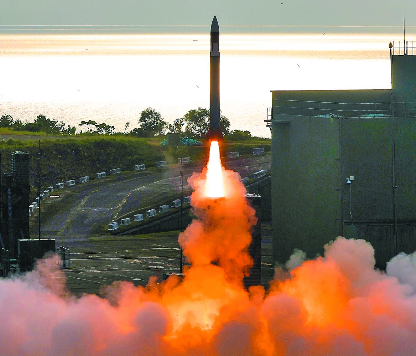 國軍民國113年「精準飛彈射擊」20日清晨於屏東九鵬基地及東部海、空域展開。圖為愛國者二型(PAC-2)防空飛彈發射情形,愛國者系統是美國雷神公司研發的防空飛彈系統,主要用於攔截來襲的戰機、巡弋導彈及戰術彈道飛彈,在我國空防負責執行中高空層防護任務。(鄧博仁攝)