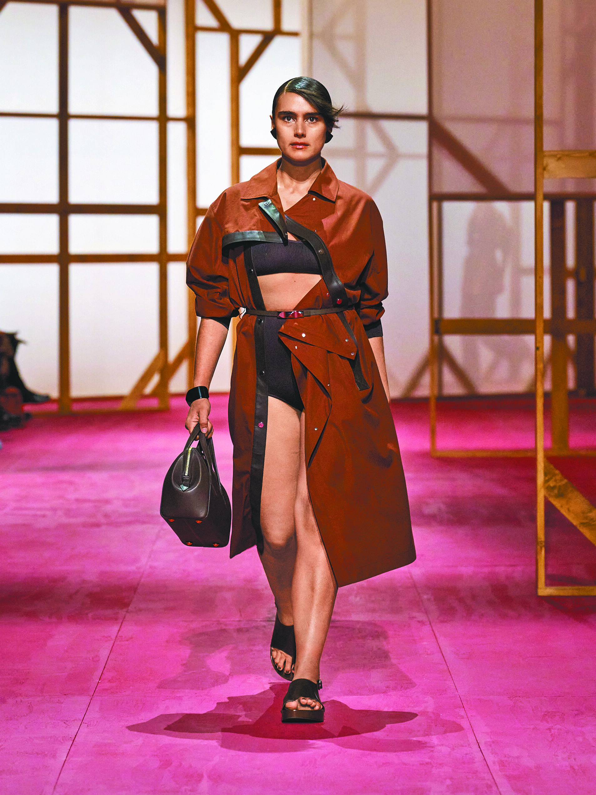 愛馬仕不愧是玩轉光影設計的強者,2025春夏女裝系列中,雖然標榜工作室內的設計風格,但在材質、剪裁、色調、設計上面,都有相當程度地著墨在「實驗」這件性質上頭,當然這種實驗不會是一般人心中拼湊而出的導論與結果,愛馬仕玩的實驗,更像是一種經過驗證、大膽與自信的結合體。