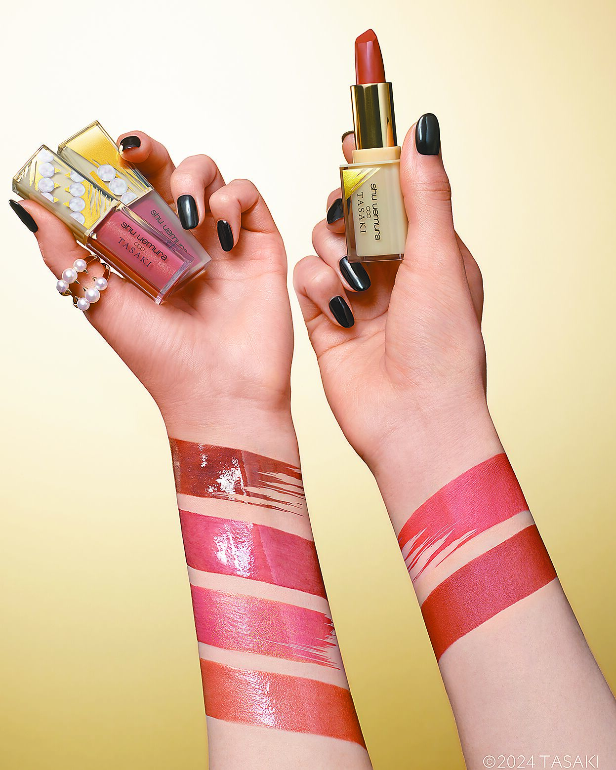 TASAKI珠寶向來充滿創意,設計感強烈,打破以往大眾對於珍珠溫柔典雅的想像,全新登場的「植村秀x TASAKI限量聯名彩妝」同樣融入截然不同的衝突美感,既性格叛逆,但又不失韻味,唇彩、蜜粉與眼影皆融入珠光元素,大膽吸睛,曖曖內含光。