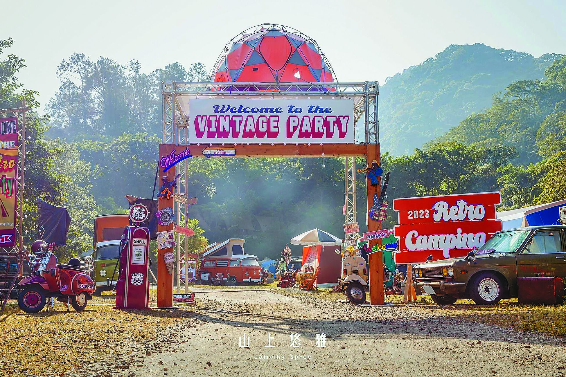 「老式派」的發起,來自他跟老派愛好者的發想,他們想要在台灣舉辦一個有規模的老派聚會,今年11月底將迎來第5屆盛事。他說,活動主打玩老燈,整個「老式派」用老的東西、古董當作氛圍佈置,也會列出主題吸引同好參加,每次「老式派」就像是老帳達人的展覽,吸引全台老派露營達人,近年更結合老派市集,讓喜歡老件的人聚在一起火力全開。