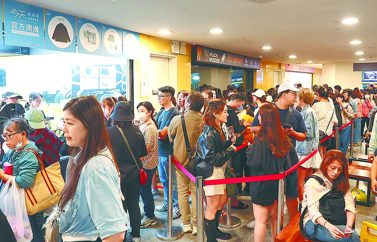 天王劉德華(華仔)暌違11年來台開唱,是他3度攻蛋,原訂10月31日起在小巨蛋連唱4天,豈料碰上康芮颱風來襲,主辦單位進行滾動式調整,直到10月31日下午3點、開唱前4.5個小時,無奈緊急宣布首場停辦;昨許多從海外及高雄、屏東、花東等地提早到小巨蛋等待的粉絲撲了空,於是在現場排隊購買華仔台北站演唱會限定周邊,彌補沒見到偶像的失落心情。