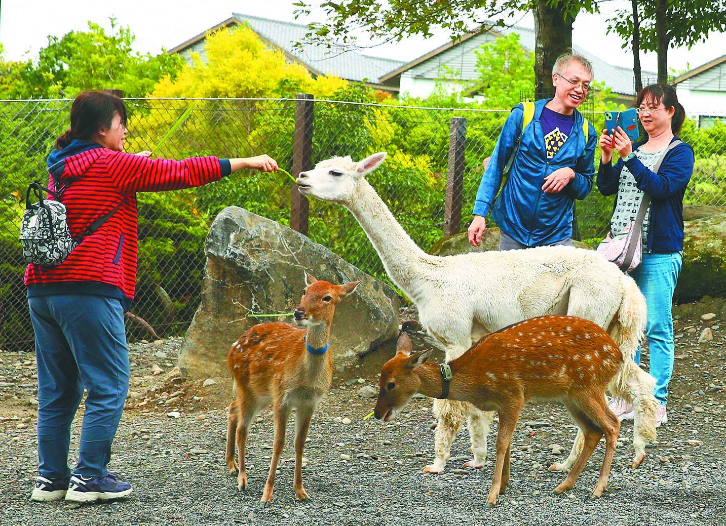 園區內目前第二號明星,為同樣來自南美洲的羊駝以及鄰居梅花鹿,住客不用到南美洲或是奈良,也可以與兩大明星互動;此外,還有園區附近黑RURU咖啡生活的瓦萊黑鼻羊,渾身毛茸茸,招牌黑臉是特徵,住客只要在店內消費,即可與這群來自瑞士的嬌客互動。