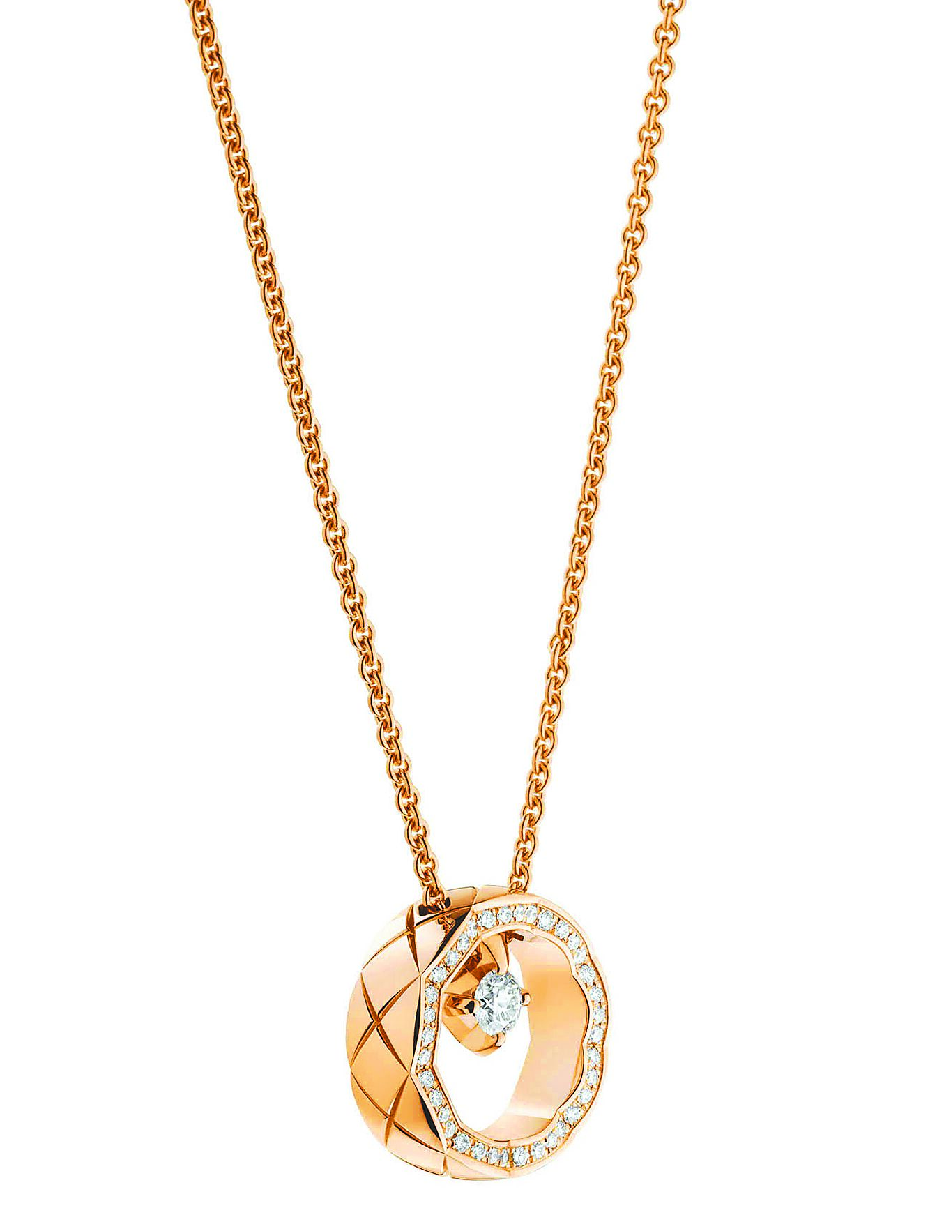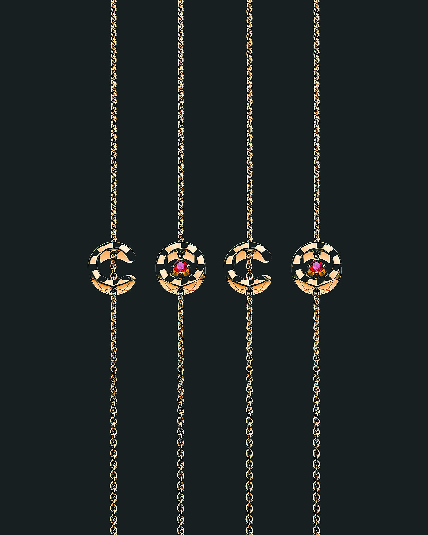 強調中性、百搭的COCO CRUSH珠寶,可透過混搭疊戴,變化出萬種風情,今年全新登場的COCO CRUSH高級珠寶延續香奈兒原創符碼,除了菱格紋外,還結合了鐫刻線條、弧形輪廓、及圓渾飾邊等創作細節,並首度綴以彩色寶石,在COCO項鍊和手鍊墜子中間鑲嵌著一顆紅寶石或鑽石,材質包括18K白金、黃金和BEIGE米色金等,更添奢華。