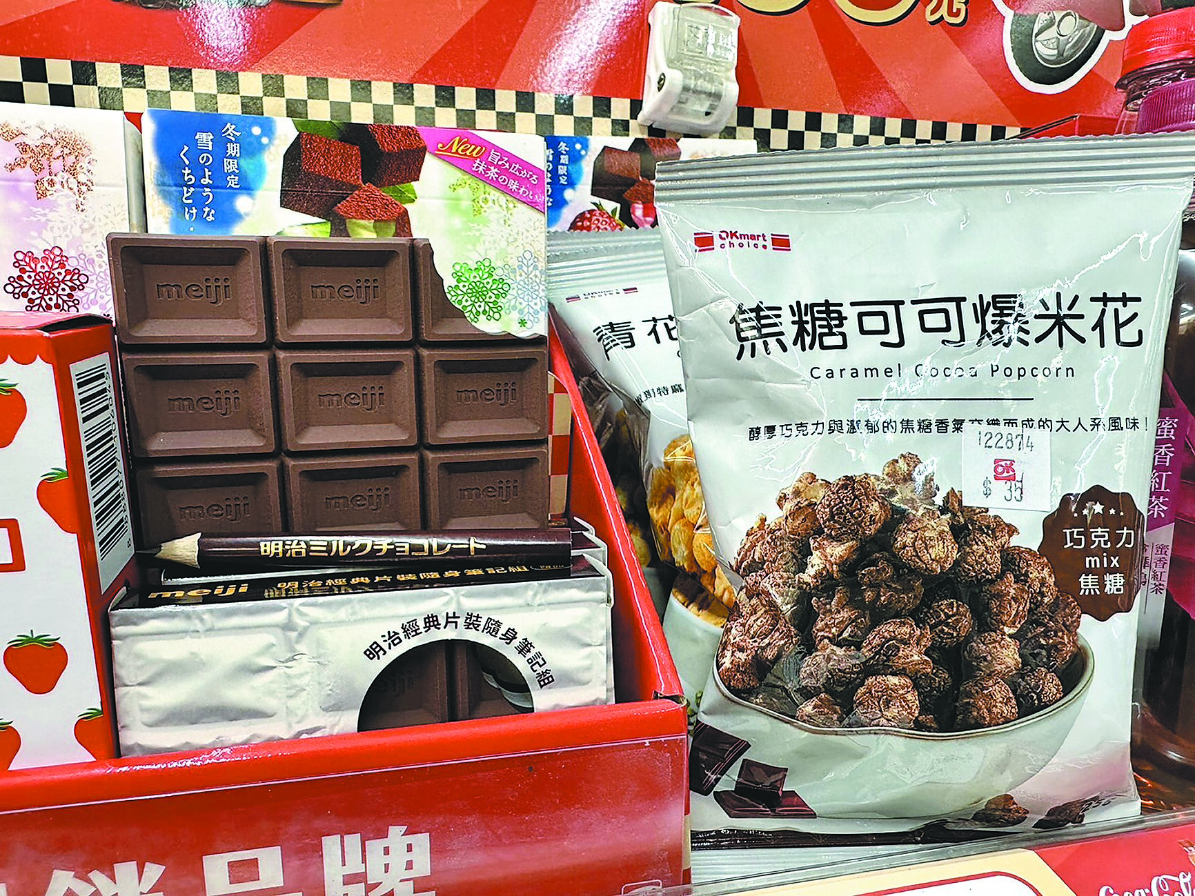 OKmart則在12月4日前祭出「黑金大賞」,精選巧克力商品第2件6折起,並推OKchoice爆米花系列包括「焦糖可可風味」,將甜蜜焦糖與濃郁可可融合。