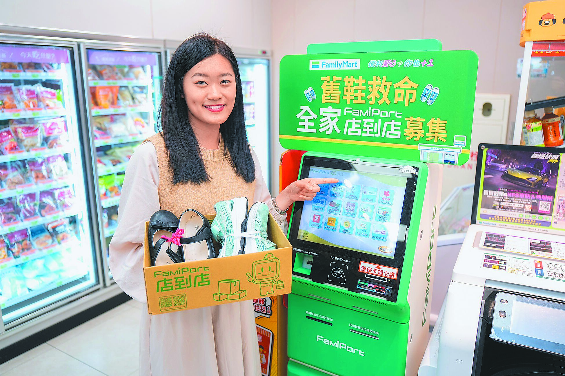 東非赤貧地區居民每日收入僅2美元,許多孩子無鞋可穿,面臨沙蚤從腳底侵入吸血的健康威脅,嚴重恐有截肢風險。而最好的預防是衛生教育、環境清潔並穿上鞋子保護雙足;全家秉持「便利永續 你也+1」的ESG精神,為「舊鞋救命協會」客製化全新的物流便利服務,將「全家店到店」模式轉化為「店到倉到倉」的創新公益模式,除了讓民眾享有長期50元公益運費、大幅降低寄送成本,也可讓協會省去高頻大量的包裹簽收勞務,最後是降低宅配送貨趟次間接減少碳排放,訴求多方有利又共好。