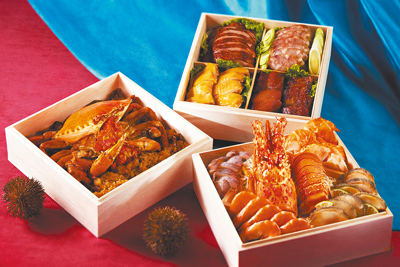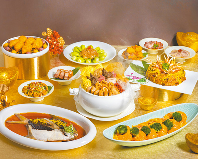 台北遠東香格里拉館內的2大中餐廳:「香宮」粵菜餐廳和「上海醉月樓」,皆推出澎湃大器的常溫外帶年菜,「香宮」主廚廖晉輝匠心挑選珍稀海陸食材,主打6人份常溫外帶年菜,內含料豐味美的「極品花膠鮑魚元貝燉雞」、蟹香濃郁的「松葉蟹鉗臘味糯米飯」等7道佳餚。