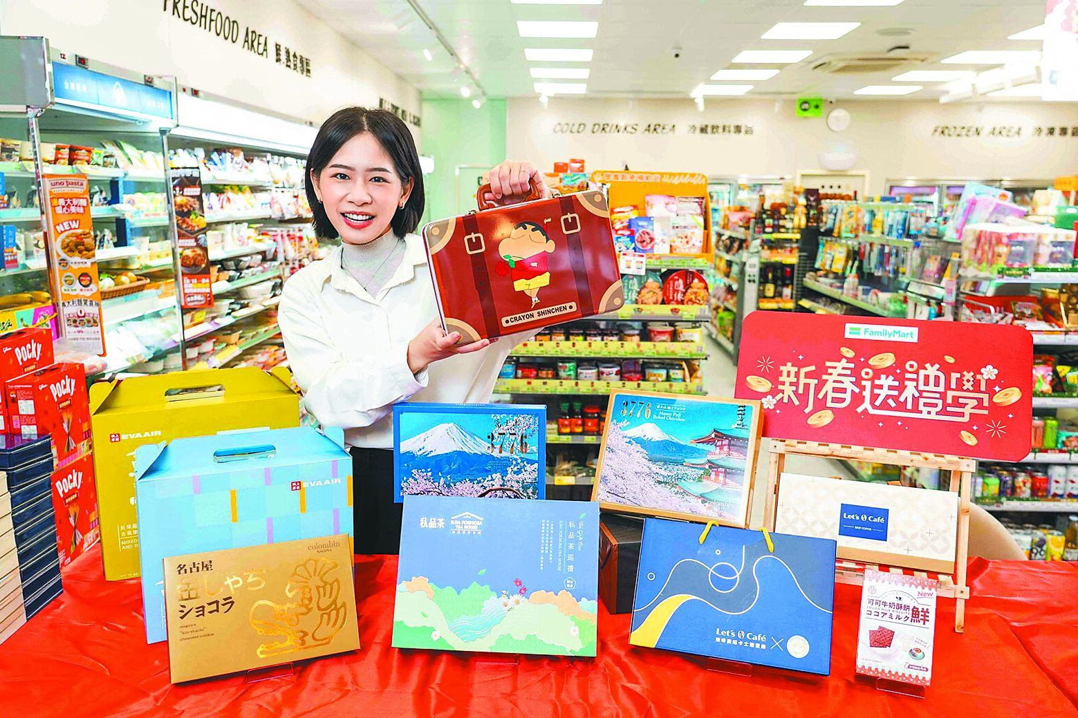 瞄準春節旅遊潮,全家亦推多款以旅行為主題的春節禮盒,包含旅行周邊用品、機上限定美味增添儀式感,首推BT21「防水底片相機棉花糖組」,讓BT21角色躍上底片相機,便攜又防水,而BT21「巨大撲克牌焦糖爆米花」用大尺寸撲克牌熱絡聚會氣氛,長榮航空「吉果樂-機上經濟艙米果」與「吉果樂-機上商務艙綜合堅果」以小包裝設計輕鬆解饞。