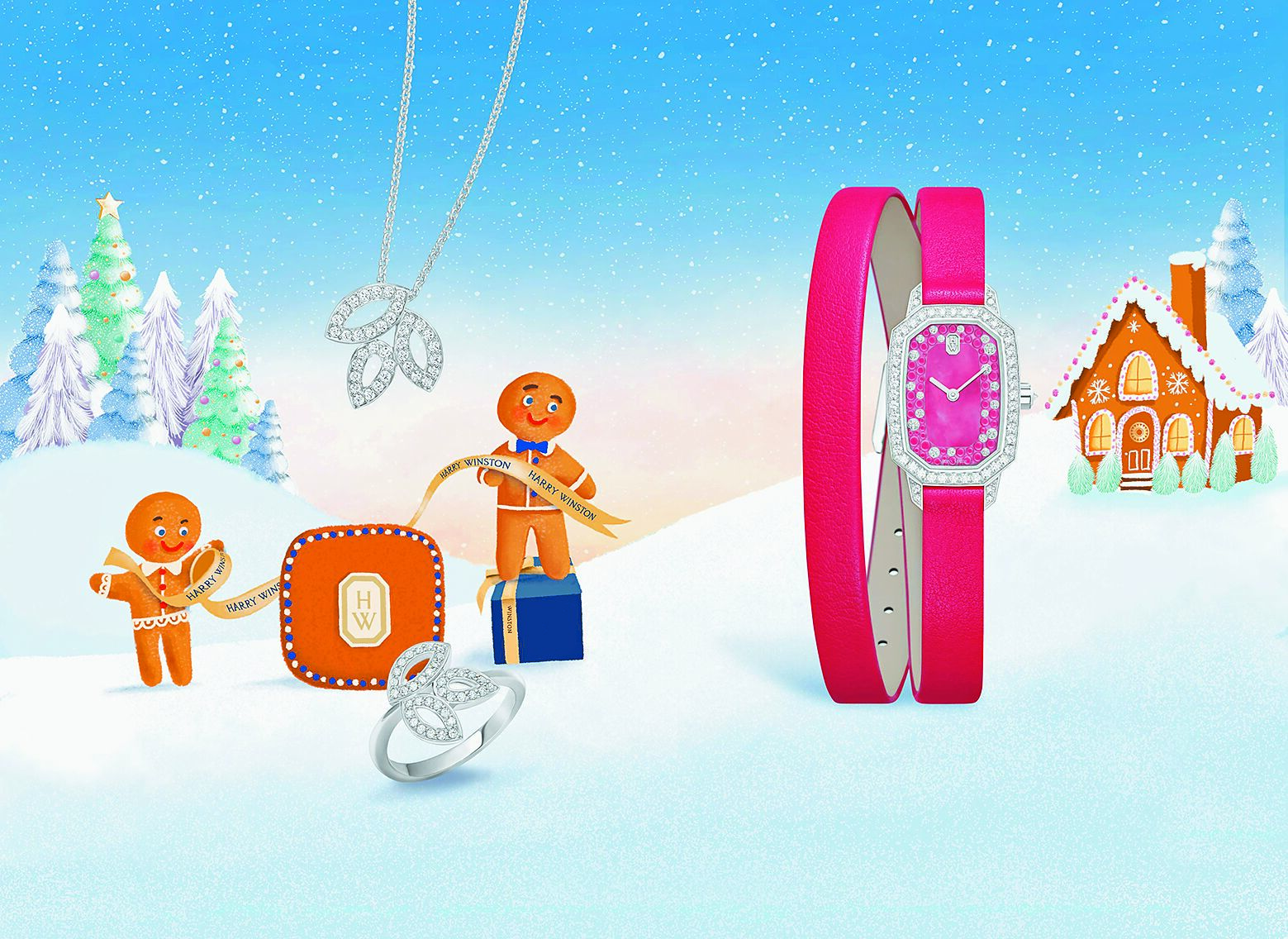 充滿歡樂節慶的耶誕跨年檔期,向來是珠寶旺季,海瑞溫斯頓(Harry Winston)今年以可愛的薑餅人、薑餅屋和紐約雪景為形象主題,將華麗璀璨、色彩繽紛的珠寶融入冬季節慶美景,充滿喜悅歡樂的氣氛。
