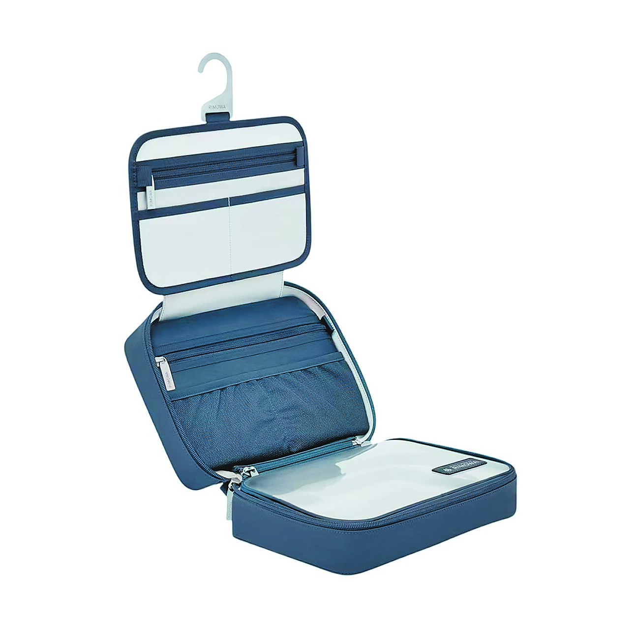 業者表示,只要先確認好旅行途中的必備物品置於其中,平常捆起來等到要出國時直接整包塞進行李箱,完全不用煩惱飛到當地才發現沒提供牙刷該有多尷尬。而三摺盥洗包更附有一組衣架掛勾設計,方便掛置於淋浴間中,外袋更飾以RIMOWA標誌和品牌德國科隆廠房座標的縫合設計,質感與功能性兼具,也是常常飛出國的商務客必備的行李打包術利器之一。
