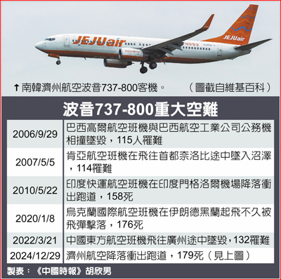 韓國濟州航空波音737-800客機空難,該飛機型號在全球廣為使用,過去近20年來,曾發生多起致命空難事故。另外,同屬波音主力的737 MAX型航機近年也是意外頻發。