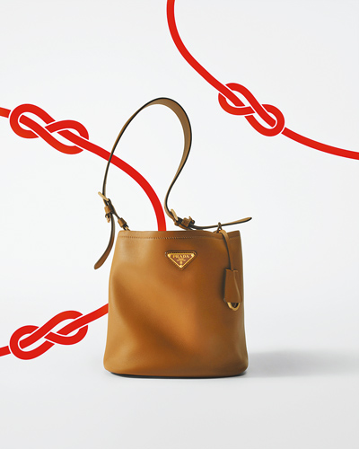Prada推出春節限定單品,其中一只白色皮革立方肩背包,肩帶處運用兩個黃銅金色圓環,宛如阿拉伯數字「8」發出「發」的諧音,也似蘊含福祿的葫蘆元素。另有一款橄欖綠肩背包,採用尼龍背帶設計以減輕重量,正面再配上Prada經典三角琺瑯名牌,兼顧品牌辨識度與實用性能。若偏好更具運動風格的款式,可考慮新推出的三角形運動斜肩包,擁有雙拉鍊設計以區隔收納機能,無論戶外出遊或輕量運動都相當實用。