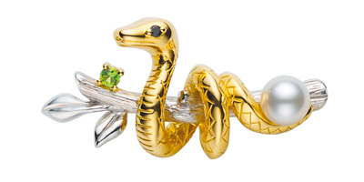 MIKIMOTO每年定期推出生肖主題胸針,向來深受收藏家喜愛,今年為迎接金蛇年,特別採用Akoya珠寶打造兩款別具巧思的蛇年胸針,以祥蛇好運蜿蜒而上的靈動姿態,寓意了步步高升。
