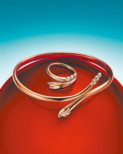 蒂芙尼(Tiffany & Co.,以下簡稱TIFFANY)在蛇年新春之際推出Elsa Peretti系列Snake珠寶新品,重現品牌傳奇設計大師Elsa Peretti對自然之美的熱愛,以18K玫瑰金打造的Snake手環和戒指,生動呈現蛇的柔美曲線,蛇尾鑲嵌閃耀華美的鑽石,更添悄皮可愛。