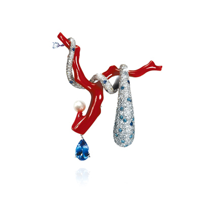 台灣珠寶設計師林曉同(LinShiaotung)在蛇年推出多款珠寶,其中一款「夢」靈蛇珠寶胸針,鑲著鑽石的靈蛇抬起蛇首,鎮定而從容,盤旋纏繞在紅色珊瑚木上,蛇尾勾勒生命曲線,鑲滿鑽石與藍寶石,珊瑚胸針鑲有珍珠,並有一顆海水藍寶主石墜飾,詮釋靈蛇的神祕與優雅。