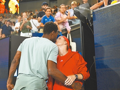 網壇夫妻檔蒙菲爾斯、史維托琳娜18日在澳洲公開賽扮演種子殺手,法國「跳跳虎」蒙菲爾斯先以3比6、7比5、7比6(1)、6比4淘汰男單第4種子弗里茨,追平費德勒以38歲高齡打入澳網16強的紀錄。同場地次役史維托琳娜也追隨老公腳步,逆轉擊退女單第4種子鮑琳妮。