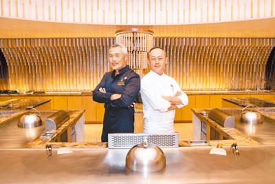 此次港台雙廚將於5月6日至8日登場,演繹10道精湛鐵板料理,客座菜單以魚子醬、法國藍龍蝦、日本A5山形和牛菲力等頂級珍稀食材入饌,結合多道米其林指南推薦必嘗料理,套餐每位1萬2000元加1成,每餐期限量20席。
