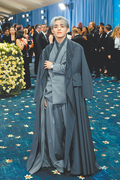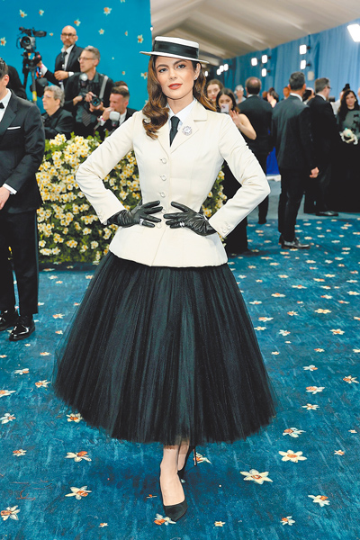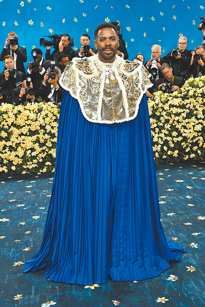拋開所謂的DEI,仔細觀察今年紅毯嘉賓,各色人種、性別認同者都有,算是相當程度上貫徹自20世紀以來追求的DEI平等,例如辛蒂亞就以一套白色LV訂製男裝禮服登台,大型寬邊帽與三件式禮服設計,扭轉她過往女神形象,並搭配寶格麗珠寶。科爾曼多明哥在性別議題上演出也挺用力,出場時以藍色蕾絲刺繡斗篷現身,脫掉斗篷後露出底下充滿男性陽剛感的Valentino格紋西裝造型,並搭配Boucheron珠寶。