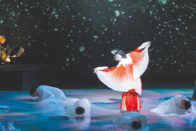 精衛鳥和精衛魂如希臘悲劇吟唱著,汪的詩句與汪的歷史片段交錯著,是銜石痴絕、九死不悔的選擇和命運。京劇演員與現代舞者,交相描繪那個時代:血紅的大旗,揮舞過舞者的身軀,象徵了戰爭的殘酷與侵略者的兇暴。紮靠戴翎的精衛肉身,在鐵馬金戈的戰事中,彷彿把自己困在了責任和枷鎖中。隨著珍珠港事變、美蘇加入大戰,局勢開始丕變,國軍開始戰勝,精衛陷入巨大的矛盾。一方面盼望中國得勝,另一方面「一旦得勝國家有救,便是我身敗名裂之時。」他頹然唱著:「冠冕是我親手穿戴,世上最難莫過於自毀千秋萬世名。」面對歷史的難題,此劇選擇以汪精衛的內心幽微處,波濤起伏和糾結折磨為焦點。