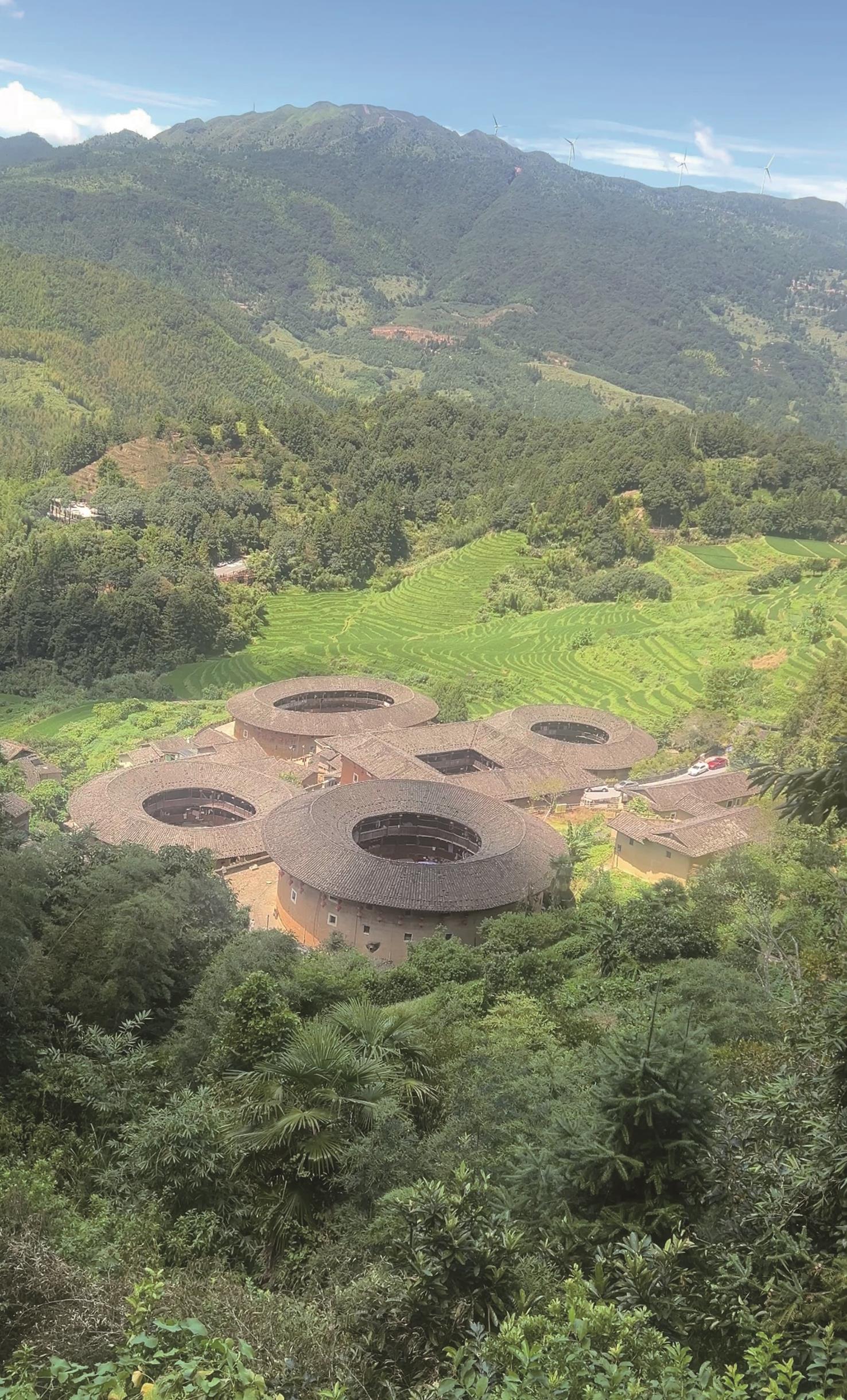 田螺坑土樓群由三座圓樓、一座方樓和一座橢圓樓組成,從高空俯瞰,格局宛如餐桌上的「四菜一湯」。清晨時分,薄霧籠罩山谷,樓群如水墨畫般浮現,吸引眾多遊客流連拍照。近年來,當地政府持續完善基礎設施,讓遊客在觀賞古建築之餘,也能體驗深度旅遊。對南靖而言,這些樓不只是靜態文物,而是能承載教育、研究與產業發展的活資產。
