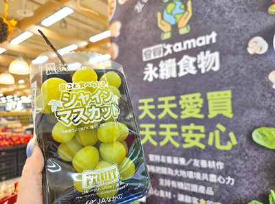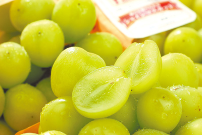 日本麝香葡萄產地到,家樂福空運山梨縣麝香葡萄,每盒350g特價399元,本周末全台上架,旗下Mia C'bon更推岡山晴王禮盒600g 1799元;愛買量販則引進長野縣麝香葡萄,即日起限量5000盒,每盒350g特價299元,去年曾創下百萬營業額,吸引消費者搶先嘗鮮。