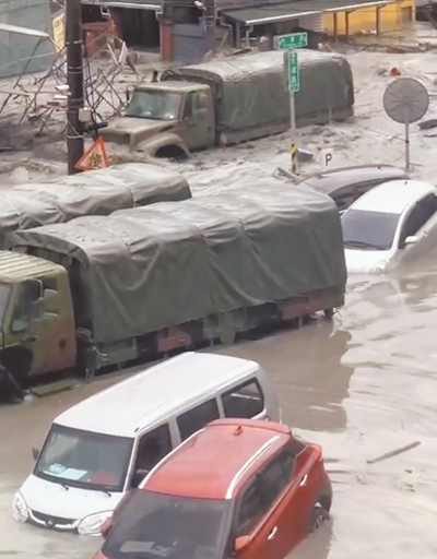 災民上傳許多現場畫面,包括軍卡在內的大小車輛被洪水衝走、市區道路宛若河流動盪,怵目驚心的場景震撼全國。賴清德總統昨晚表示,已請行政院長卓榮泰指示中央災害應變中心統合各部會,全力協助花蓮縣府採取緊急應變措施,並投入救援。待溢堤狀況解除後,中央將請環境部與國防部,支援地方政府進行災後清理與復原工作。