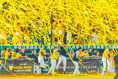 中信兄弟2日靠著右投林暉盛(見圖)先發7局僅失1分,與江坤宇敲雙安、得2分還貢獻1打點,以6比2擊敗味全龍,拿下今年中職下半季冠軍,在15383人湧入的台中洲際棒球場拋下黃色彩帶。中信贏得全年戰績第1的魔術數字也只剩M1,最快今天搶下直進台灣大賽的入場券。(中信兄弟提供/李弘斌台北傳真)(相關新聞刊B3)