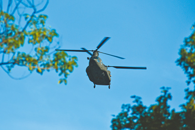 空軍雷虎小組已於年中換裝AJT「勇鷹」高教機,接替展演任務,2日清晨登場的國慶空中「半兵力」預演,國軍出動1架CH-47、1架UH-60直升機及3架帶有噴煙裝置的勇鷹高教機,拉出藍、白、紅3色彩煙衝場;這也是「勇鷹」首次噴煙通過總統府前廣場,並以雷虎小組的身分備戰下周登場的雙十國慶典禮。(文:劉宇捷 圖:陳君瑋)