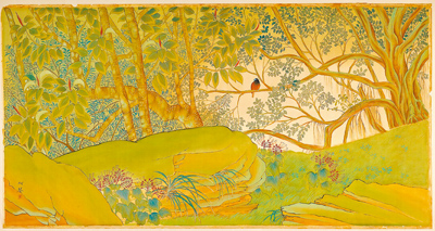 母親晚年時曾對我說起,《南國》這幅畫是她與父親初識時的作品。她當時原本的構圖是在林樹幹上描繪雙棲的「一對鳥」,寄寓初識父親的心境與悸動。然而,鄉原老師認為她尚未婚嫁,建議她僅畫單鳥,母親順從導師,將構圖減為「孤鳥」。對母親而言,畫裡沒有把那分象徵對父親的心境呈現出來,成為一段無以抹去的憾事。