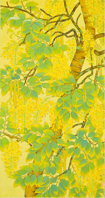 母親有幸親炙名師,在鄉原先生的悉心指導與鼓勵下,於素描、構圖及色彩運用上,逐步奠定了紮實的藝術根基。鄉原先生更允許她於暑假期間創作較一般同學更大的畫作,使她先後完成了《黃莢花》(與《南國》。