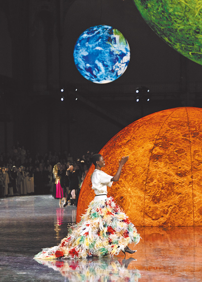 正當整個巴黎時裝周的時尚迷都在期待CHANEL新任藝術總監Matthieu Blazy的首秀之際,他卻以遠超預期的創作能量,將一場名為《Une Conversation(一場對話)》的時裝秀,化為星系誕生般的壯闊篇章。踏入位於巴黎大皇宮的秀場,頭頂懸掛的八大行星,象徵著香奈兒宇宙的運行軌跡,光影流動間,既浪漫又帶著理性結構的秩序感。