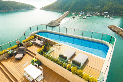 富麗敦海洋公園酒店以純白線條勾勒出流動的海浪意象,宛如貼著南中國海漂浮而生,酒店共設425間客房與套房,全數面海,窗外是一望無際的藍;頂層兩間泳池套房更配備私人露台泳池,將海天一線的壯麗盡收眼底,這裡強調「可持續奢華」,從建築材料到節能設施皆貫徹環保理念。