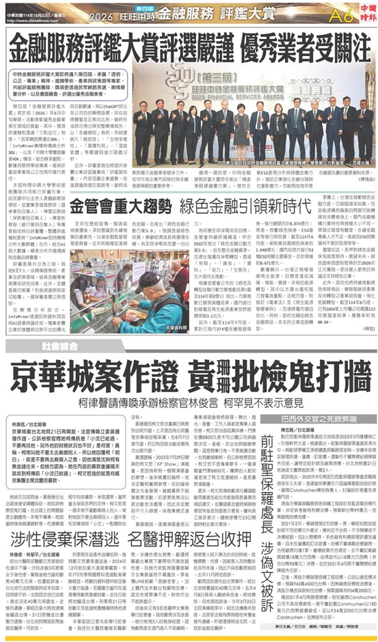 A6 旺旺中時金融服務評鑑大賞/社會綜合
