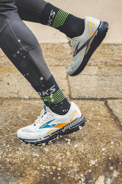 BROOKS則推Ghost 17 GTX防水鞋款,不只運用DNA LOFT v3避震緩衝中底科技,更特別加入GORE-TEX薄膜結構,提供輕量防水透氣機能;品牌同時針對足內旋或膝部壓力較高的民眾推Adrenaline GTS 24 GTX/23 GTX防水鞋款,訴求走在濕滑路面也能安心維持自然步伐。