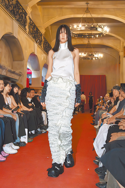 才剛從倫敦發表完的JENN LEE,帶著倫敦新作回到台北發表,本季品牌以《紅樓夢》為主軸,鞋履方面則與Crocs合作,秀上模特腳踩Crocs Height系列鞋款、身穿JENN LEE以柔軟與崩壞為靈感的最新系列登場,黑暗浪漫的哥德詩意與圓潤柔和的鞋履廓形交錯出令人屏息的畫面;服裝以層層荷葉邊、流動線條與粗獷拼接表現情緒張力,而Crocs則以機能性圓潤設計注入平衡與生活感,讓整體造型在實驗性與日常之間找到新的共鳴。