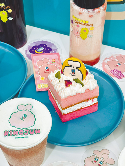 台灣人氣文創KINGJUN推出限時的下午茶派對,空間以粉和綠兩個主色調打造溫暖浪漫氛圍,現場還特別設置可愛拍貼機,最大亮點莫過於以蠢兔、BT等KINGJUN星球夥伴為靈感,設計5款甜點與6款特調飲品,消費不同品項即贈對應特典。