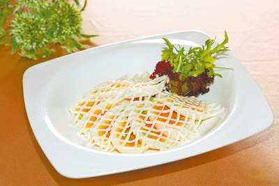 美味冷盤則有「鹹蛋黃透抽沙拉」,以繽紛的色彩和豐富的口感擄獲人心。彈牙的透抽與綿密鹹香的鹹蛋黃完美交織,搭配微酸甜的美乃滋提味,讓海味與蛋香在口中清爽又有層次地展開,是開胃首選。