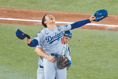 美國職棒大聯盟(MLB)世界大賽2日落幕,洛杉磯道奇憑藉威爾史密斯11局上陽春炮,以及山本由伸後援2.2局無失分,驚險以5比4氣走多倫多藍鳥,4勝3敗戰績完成2連霸,更成為MLB相隔25年以來首支衛冕成功隊伍。(文:黃及人 圖:美聯社)(相關新聞刊B3)