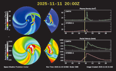 氣象署說明,受到太陽表面活躍區於昨日發生顯著的日冕物質拋射事件,預期於10日晚間通過近地太空環境,造成行星際空間中的太陽風風速及密度明顯增加,依據NOAA WSA-Enlil模式資料分析,預估地磁擾動將有明顯增強,並持續影響約24小時,最大規模可能短暫達到中度磁暴等級。