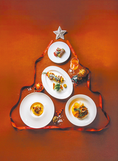 台北君悅酒店耶誕餐飲由「寶艾」西餐廳與「ZIGA ZAGA」義大利餐廳領銜,推出浪漫餐酒套餐。前者套餐包含Q萌又吸睛的「南極小企鵝」、「魚子醬天使髮麵佐黑松露昆布醬汁」、「鐵板煎夏多布里昂菲力牛排」等充滿耶誕氛圍的美饌;後者獻上「炙燒牛舌串搭配田園沙拉義式佐香料青醬」、「義大利香腸南瓜燉飯」、主餐「義式燉煮海鮮」或「紅酒慢燉和牛頰」等義風佳餚,業者表示12月24日及25日訂位已達8成5。