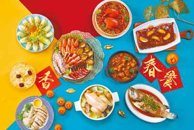 饗賓集團旗下5大品牌推外帶年菜,涵蓋台式、川味、泰式料理,售價自5188元至7288元不等,像是饗食天堂推「開運迎春御饗」,擁有集結5款海陸珍味的珍饌極鮮五福海味、肥美紅蟳入料的富貴迎春紅蟳米糕等;為順應小家庭需求,果然匯開賣單品年菜,包括御品猴菇佛跳牆等;另開飯川食堂推出需提前預約的好料,主打適合冬季暖胃的醇香黑蒜土雞鍋等。