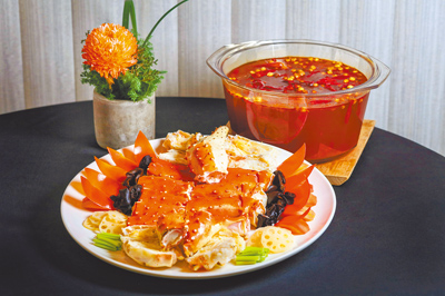 秋冬是品蟹好時節,台北喜來登大飯店米其林一星川揚餐廳「請客樓」,推出季節限定的「金蟹宴」迎饕客。主打「金蒜辣炒帝王蟹」,改良自經典粵菜「避風塘」,主廚嚴選約3公斤重的活體帝王蟹,以川味金蒜炒法呈現香、辣、酥並重的層次風味,搭配成都新一代朝天椒與韓國太陽草辣椒,再與雲林蒜酥炒成底料,蟹殼薄脆金黃、蟹肉鮮嫩噴汁,蒜香濃郁、辣而不麻。