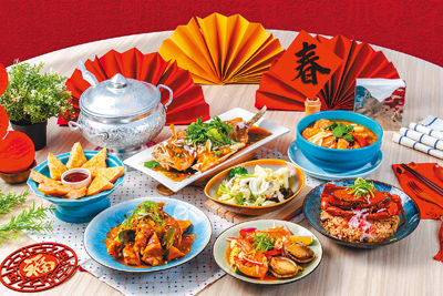 宏匯廣場集結館內多間人氣餐飲,將繁複手路菜化作便利的外帶年菜,小家庭推薦「炒湘湘經典年菜組合」,推薦價2988元,包含胡椒豬肚雞煲湯、剁椒蒸魚、鮮悶絲瓜鮑魚仔等6菜1湯1甜品,2月1日前預購送品牌紅包袋、保溫環保提袋。川味料理「開飯川食堂外帶年菜組合」推薦價7288元,祭出超澎派套餐,包含御品花膠雞佛跳牆、鮮蔘珍珠鮑魚雞及蒲燒鰻米糕等頂級食材,滿足各年齡層的胃口。