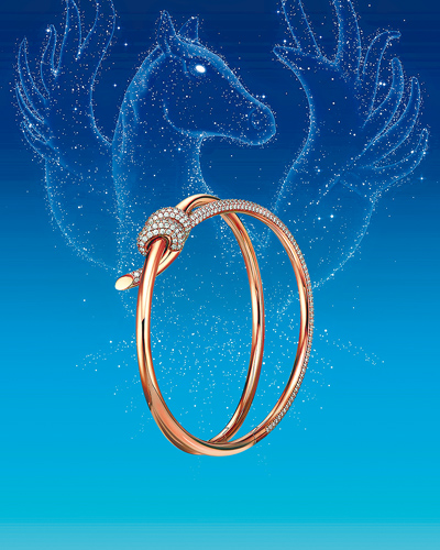 以飛馬(Pegasus)意象為主的農曆新年形象廣告,結合TIFFANY旗下最具代表性的珠寶作品,包括Tiffany Knot系列、HardWear系列、Lock系列等,其中設計大師史隆伯傑的Sixteen Stone by Tiffany16石系列珠寶,更是最大亮眼,以18K黃金鑲嵌紅寶石的鍊墜與耳環,奢華破表,更添年節氣氛。