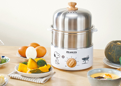 除了鍋具、廚具外,各式小家電也一起可愛升級,全聯史奴比超值預購推出多款千元以下實用家電,其中不鏽鋼多功能蒸蛋機可蒸蛋、蒸粽子、水餃等多種食材,重量不到1公斤,預購價899元。過年大掃除也有史奴比系列產品幫忙,手持直立HEPA吸塵器預購價950元;因應降溫,居家放鬆必備的足浴機同樣950元。