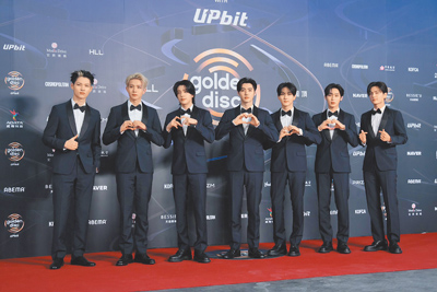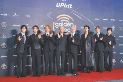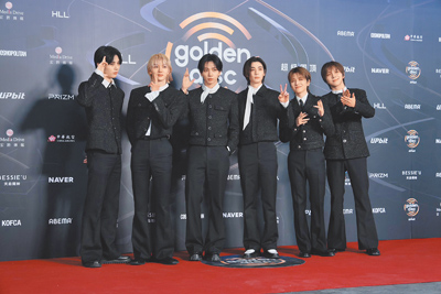 不過本屆金唱片紅毯多數團體仍以黑色作為主要色調,再透過局部色彩或材質變化增加記憶點,例如ALLDAY PROJECT便是在全黑基調中加入金色元素作為亮點,讓團體視覺更為鮮明,團員泰山、Bailey都是以全黑造型亮相,前者以貼身的皮外套、搭配黑色硬挺材質的西裝褲,後者以有肩部誇張廓形、下身則是不對稱設計短洋裝亮相,相當有氣場;而Youngseo、Woochan則是在服裝中點綴金色鈕扣,或是類金色的米色、咖啡色內搭,讓身穿全金亮片洋裝的Annie能自然融入團體之中,也讓ALLDAY PROJECT在紅毯上顯得格外吸睛。